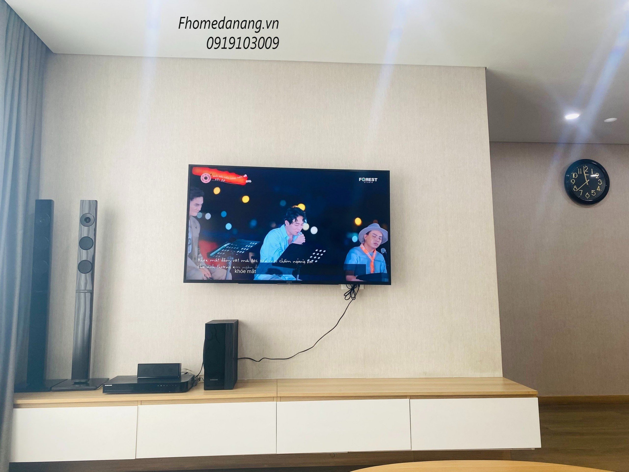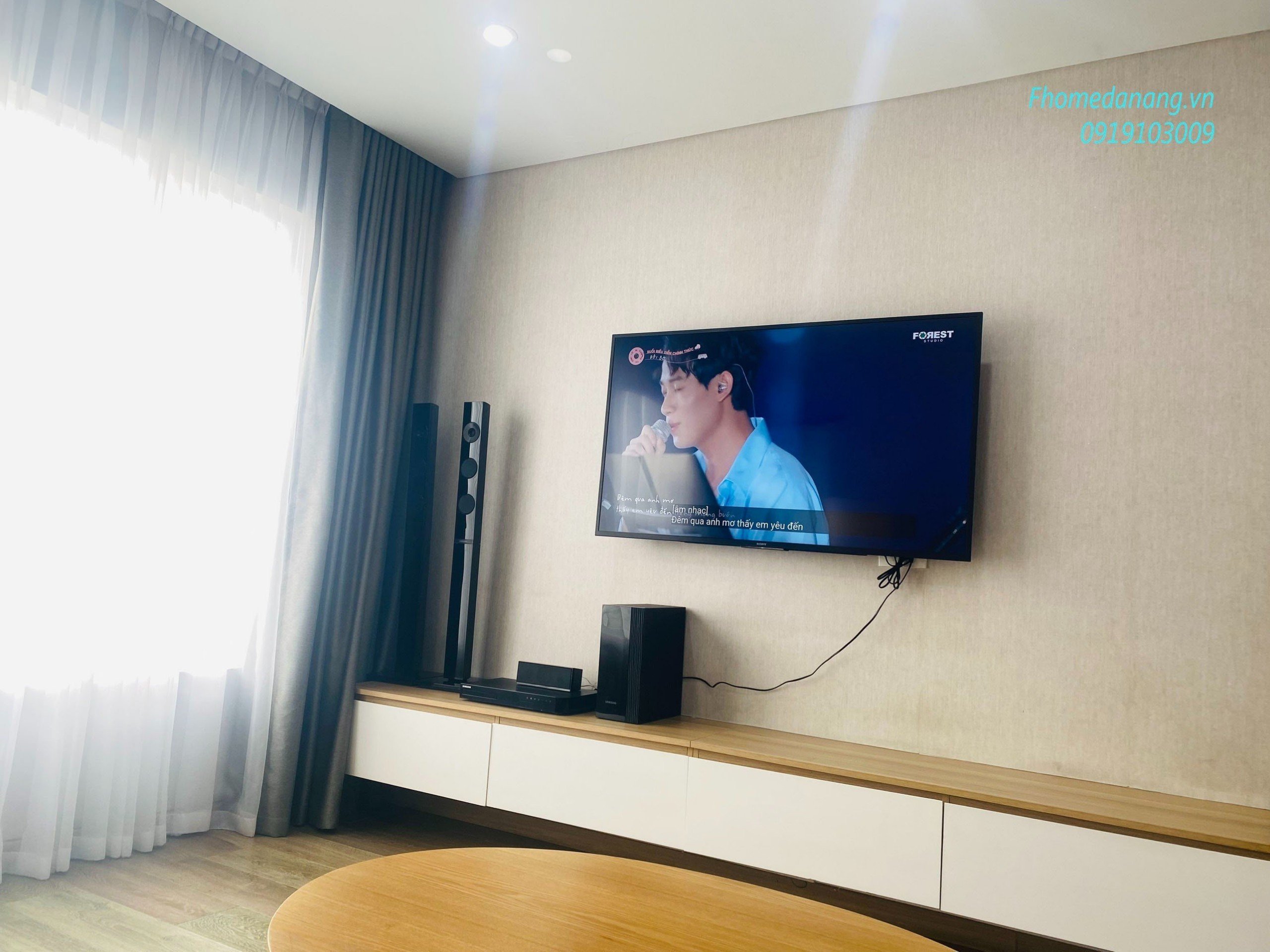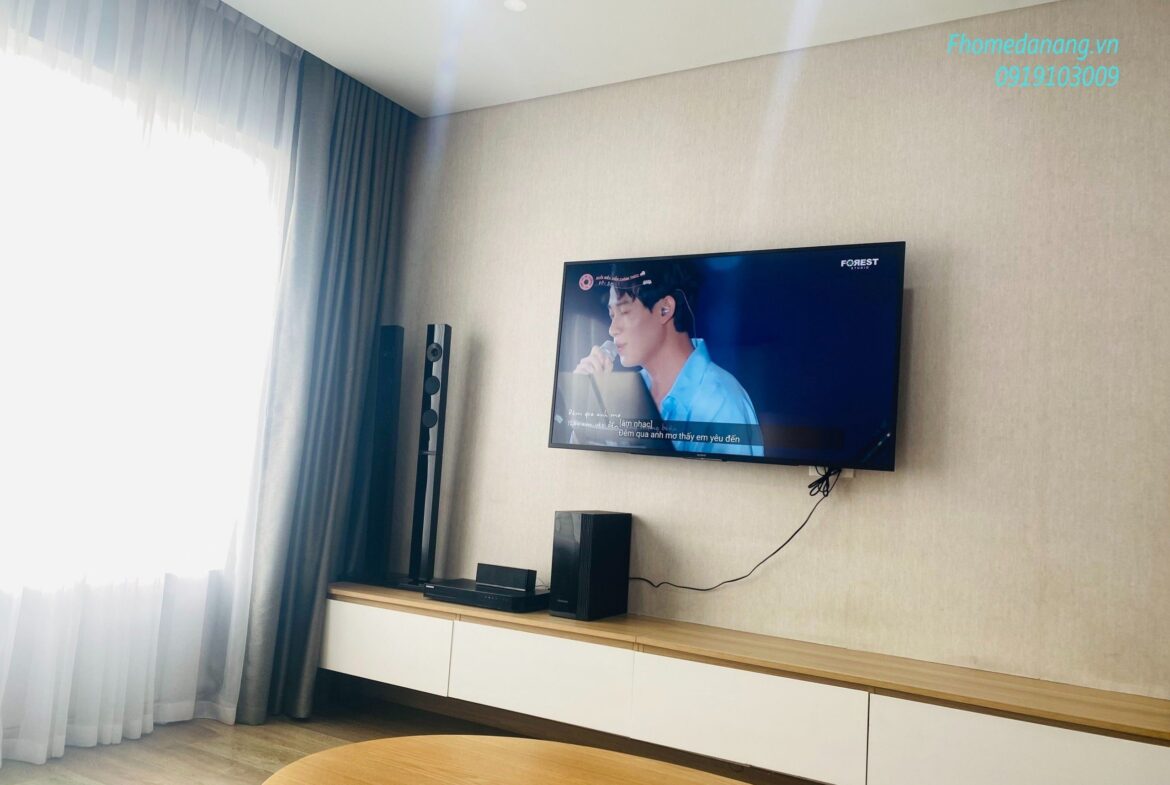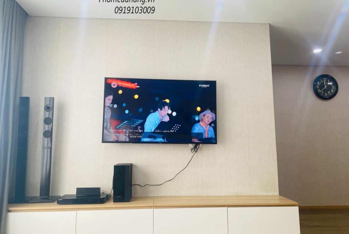 ➖ Phòng khách với hệ thống loa, smart TV 55inch