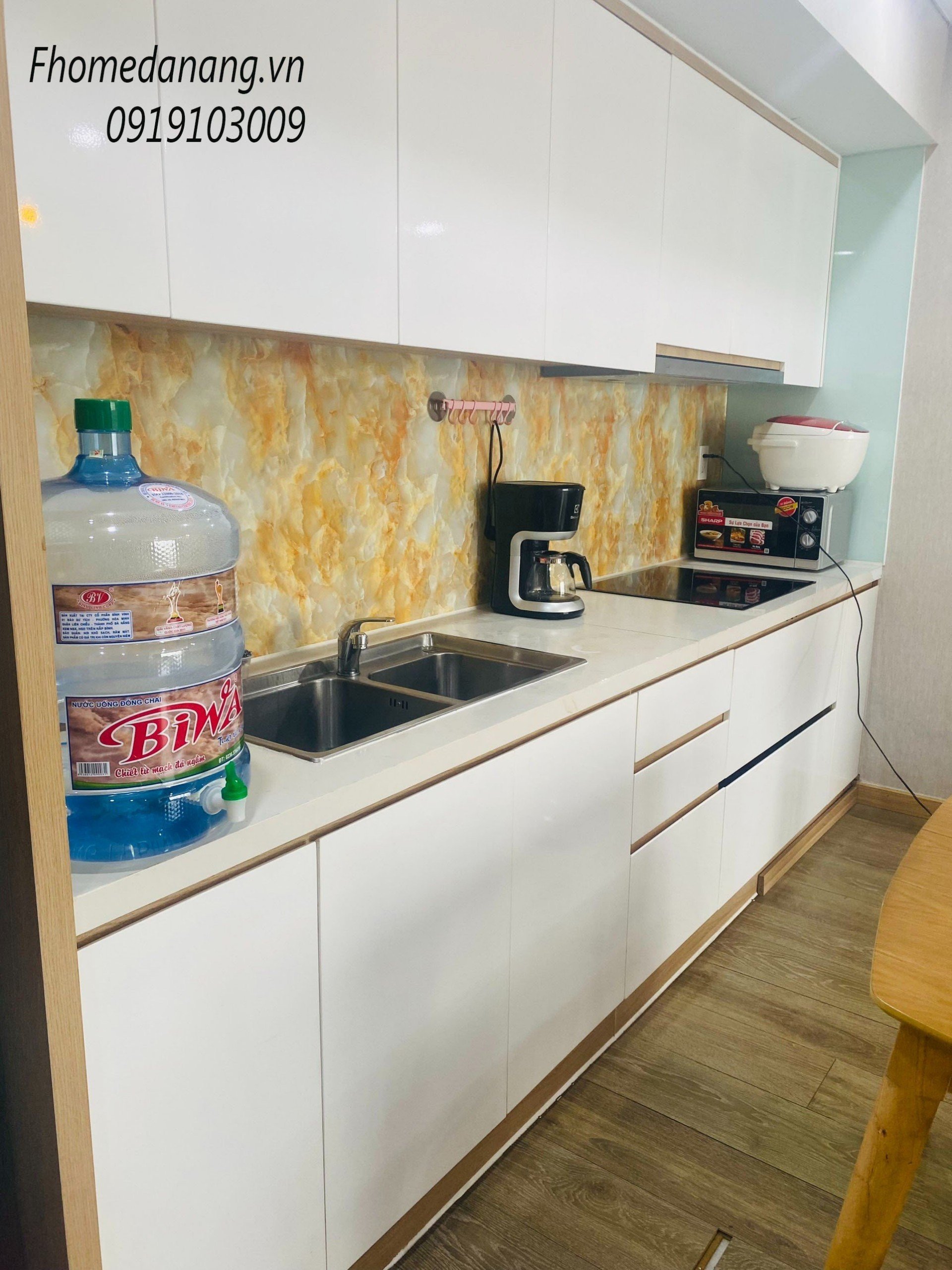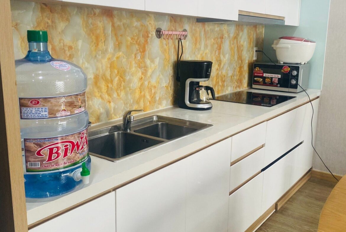 ➖ Gian bếp đầy đủ vật dụng có nồi cơm điện, lò vi sóng, máy nước nóng lạnh, máy pha cafe, lò nướng bánh mì